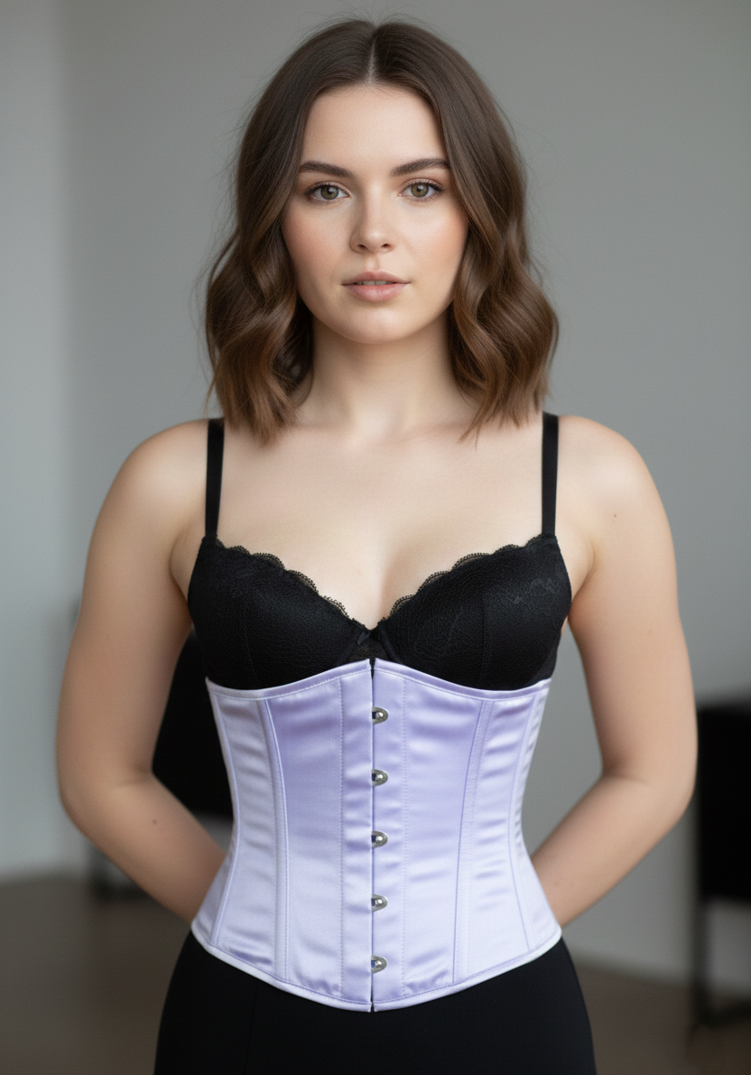 "A lavender satin underbust corset conjures images of elegance, softness, and refinement, paired with a sense of sensuality and subtle power. It's often associated with delicate yet strong characters—whether they are from fantasy, historical fiction, or modern gothic aesthetics. Here are some popular character names that could be paired with a lavender satin underbust corset."