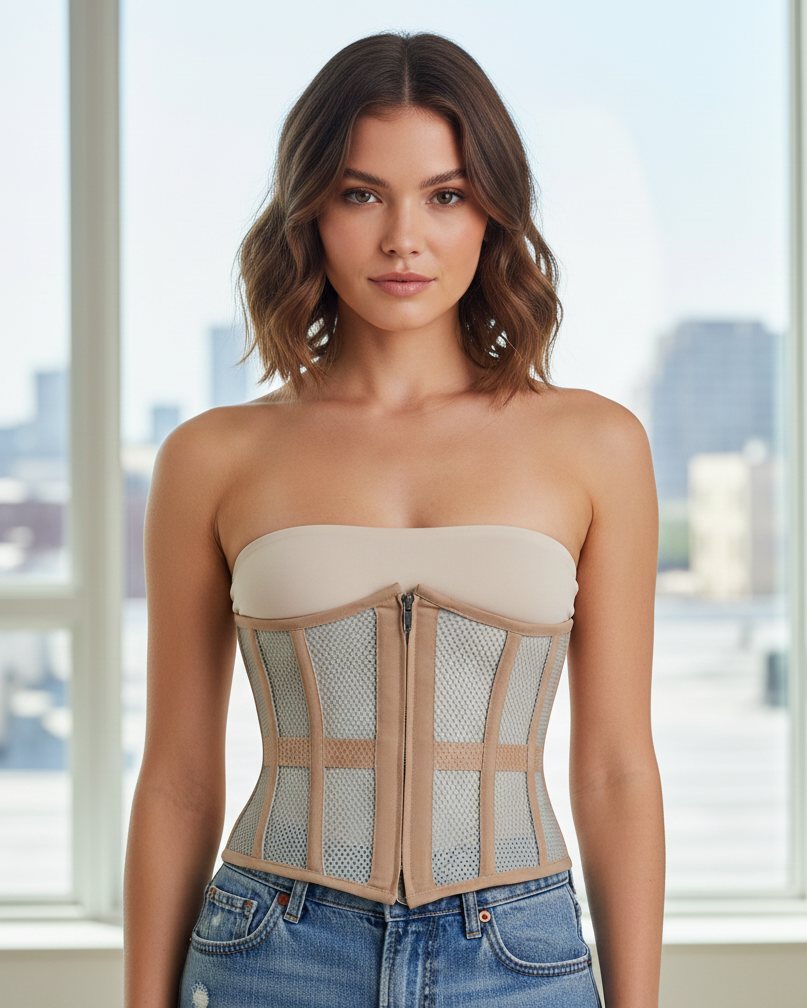 Bone: 10 Spiral steel bones are distributed all around the corset.