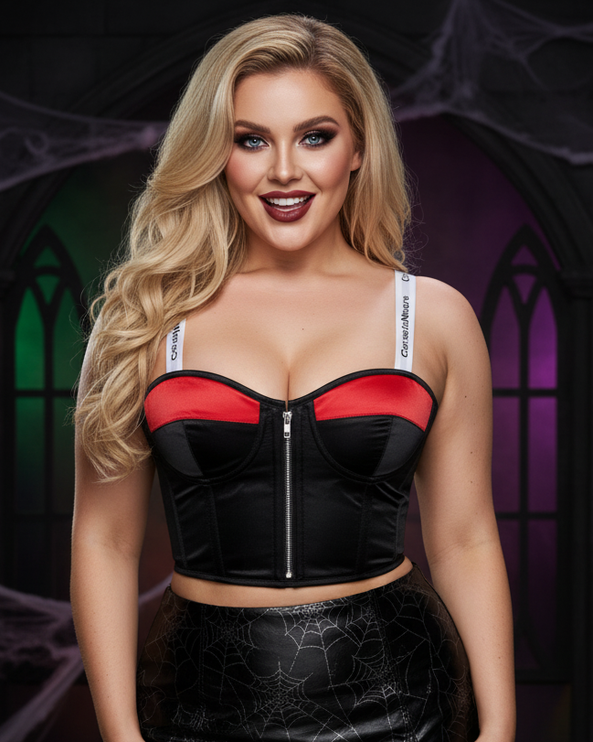 Black And Red Satin Gothic Bustier Crop Overbust Corset Top
