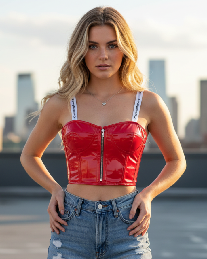 Red PVC Leather Crop Corset Gothic Waist Cincher Crop Costume