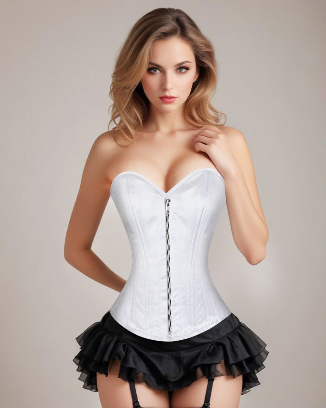 Bone: 24 Spiral steel bones are distributed all around the corset.