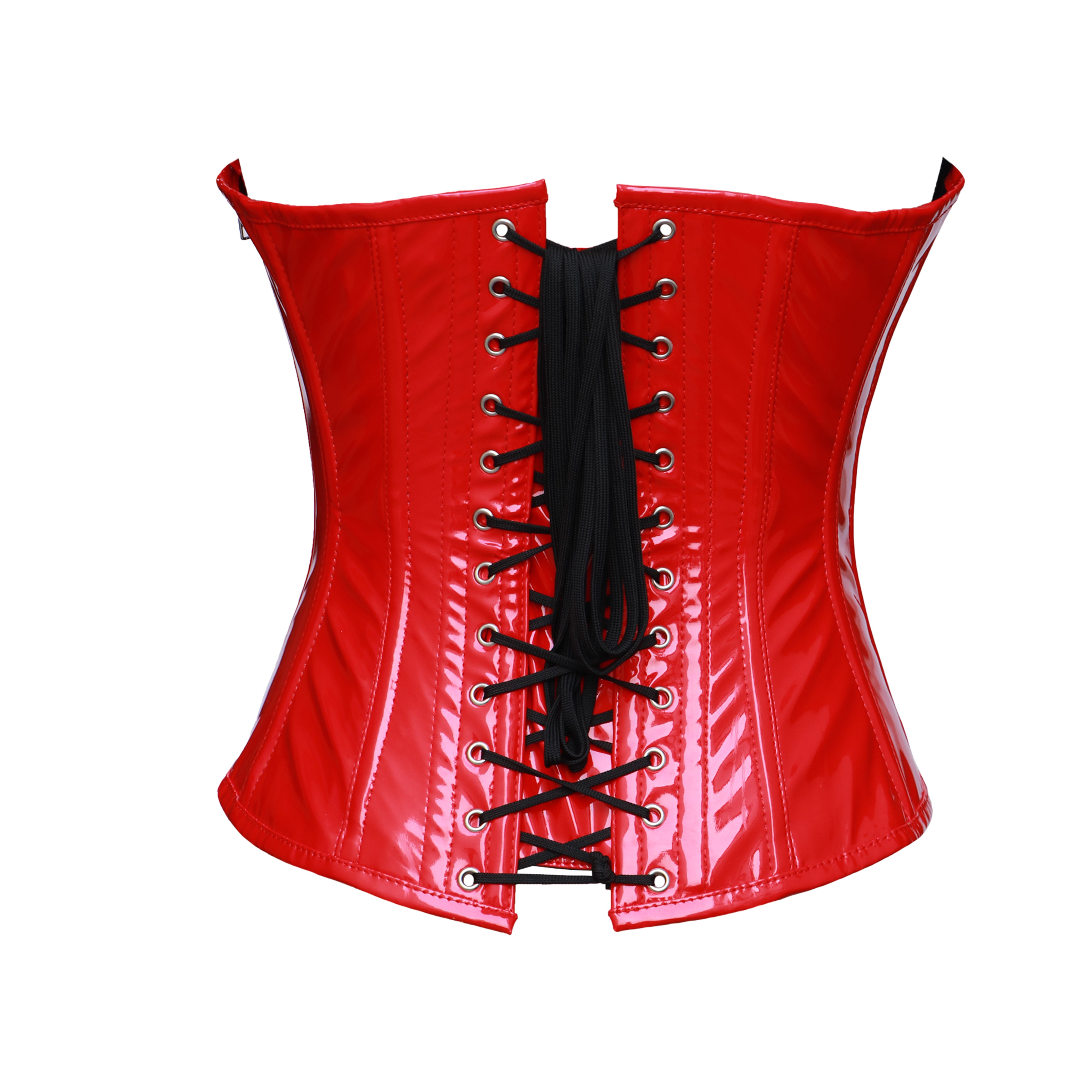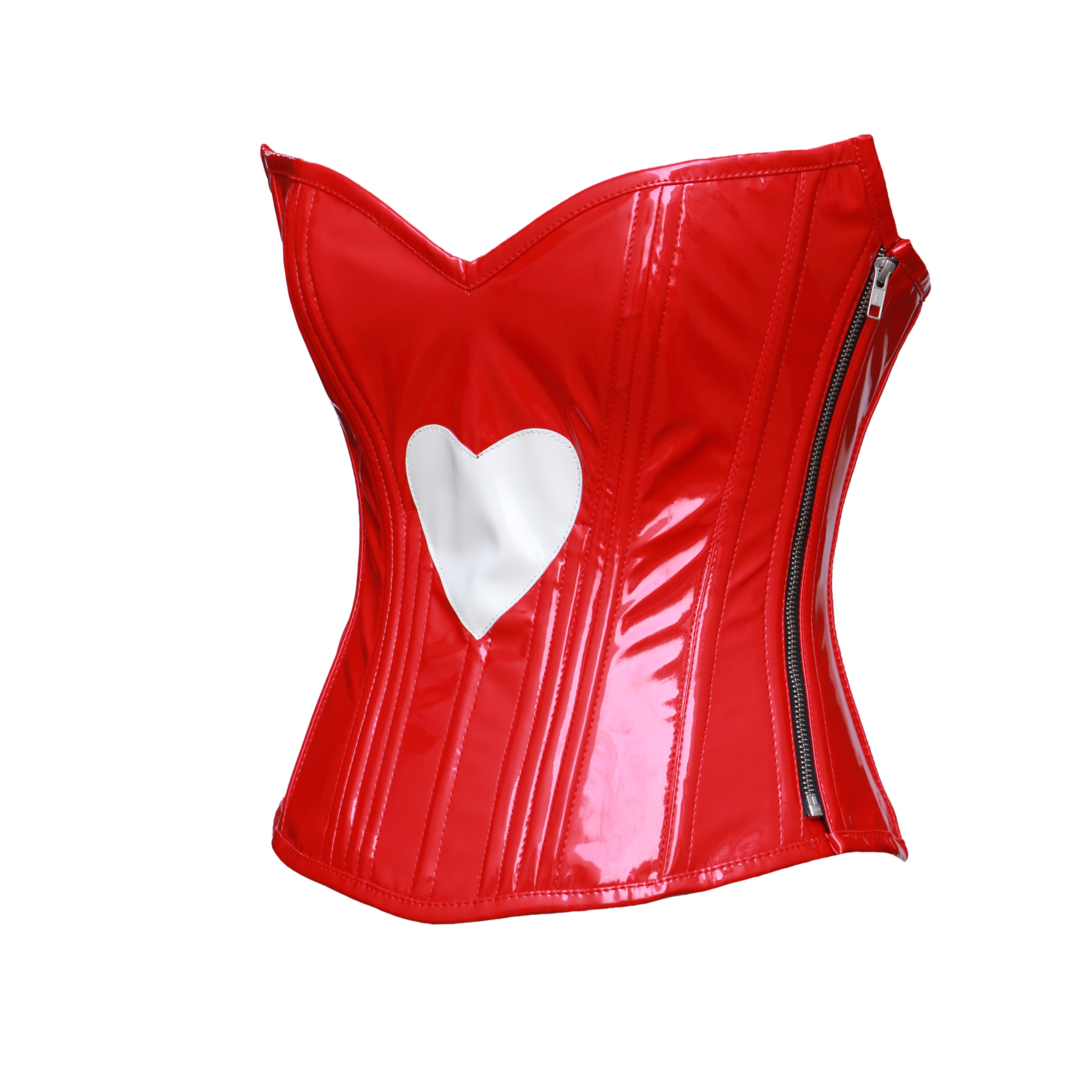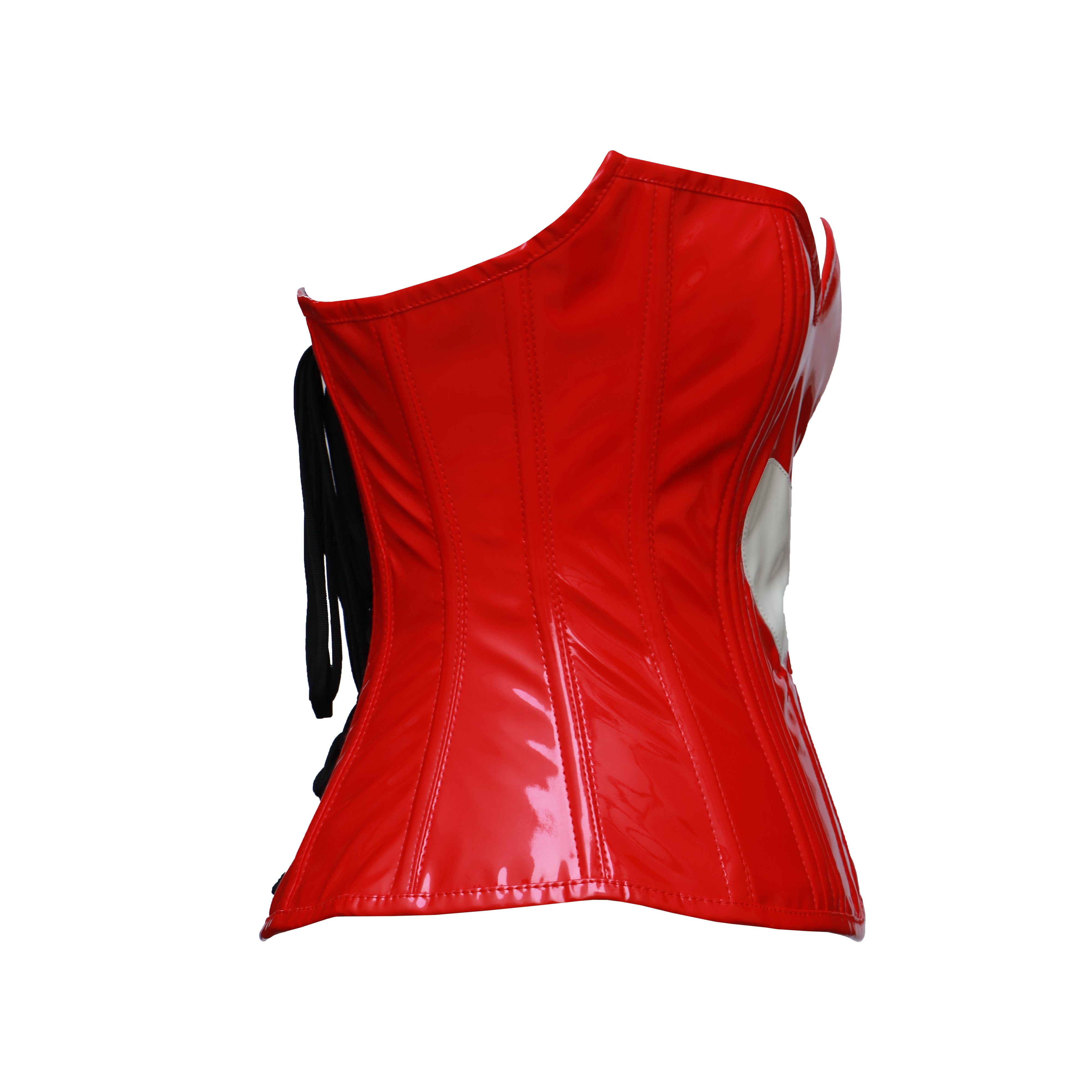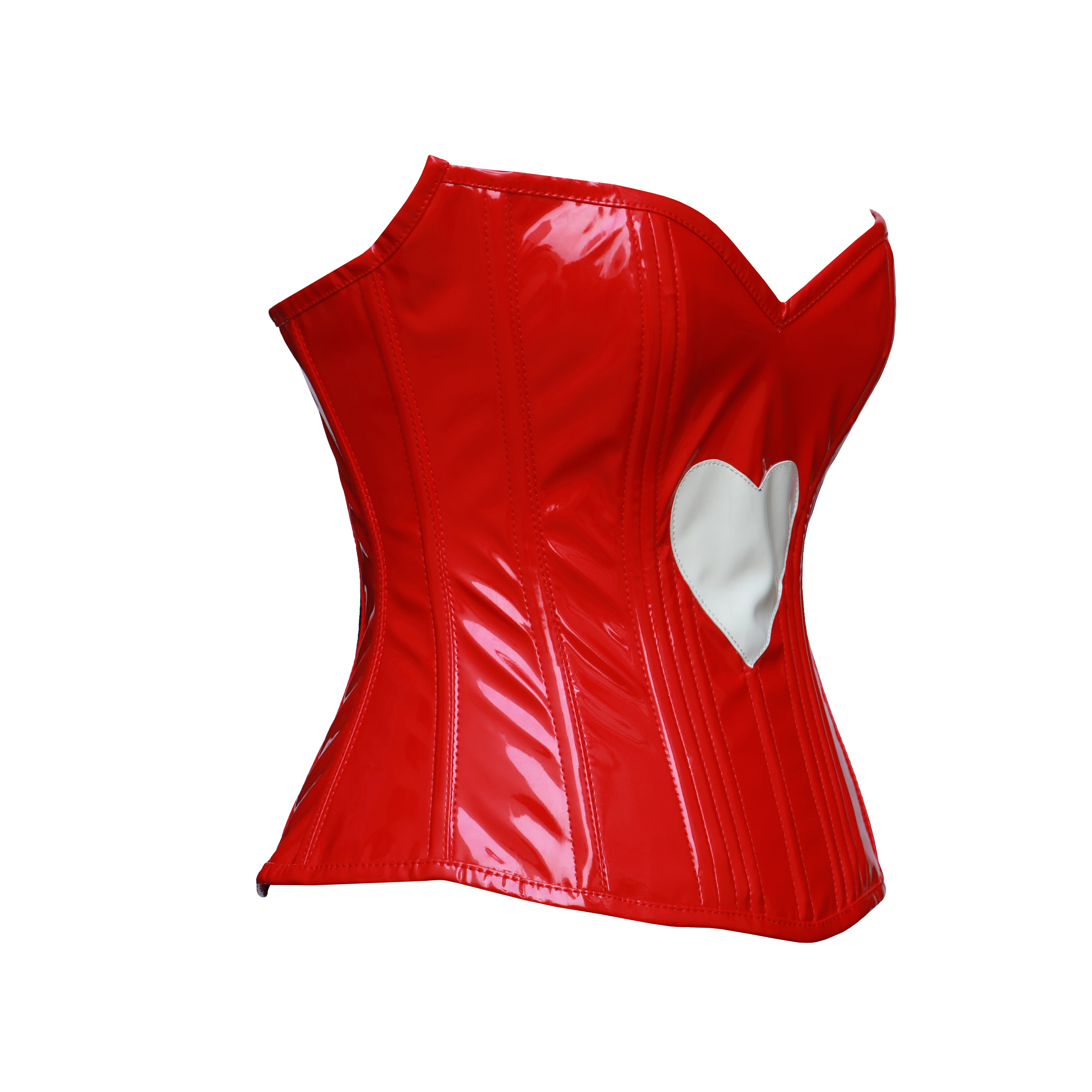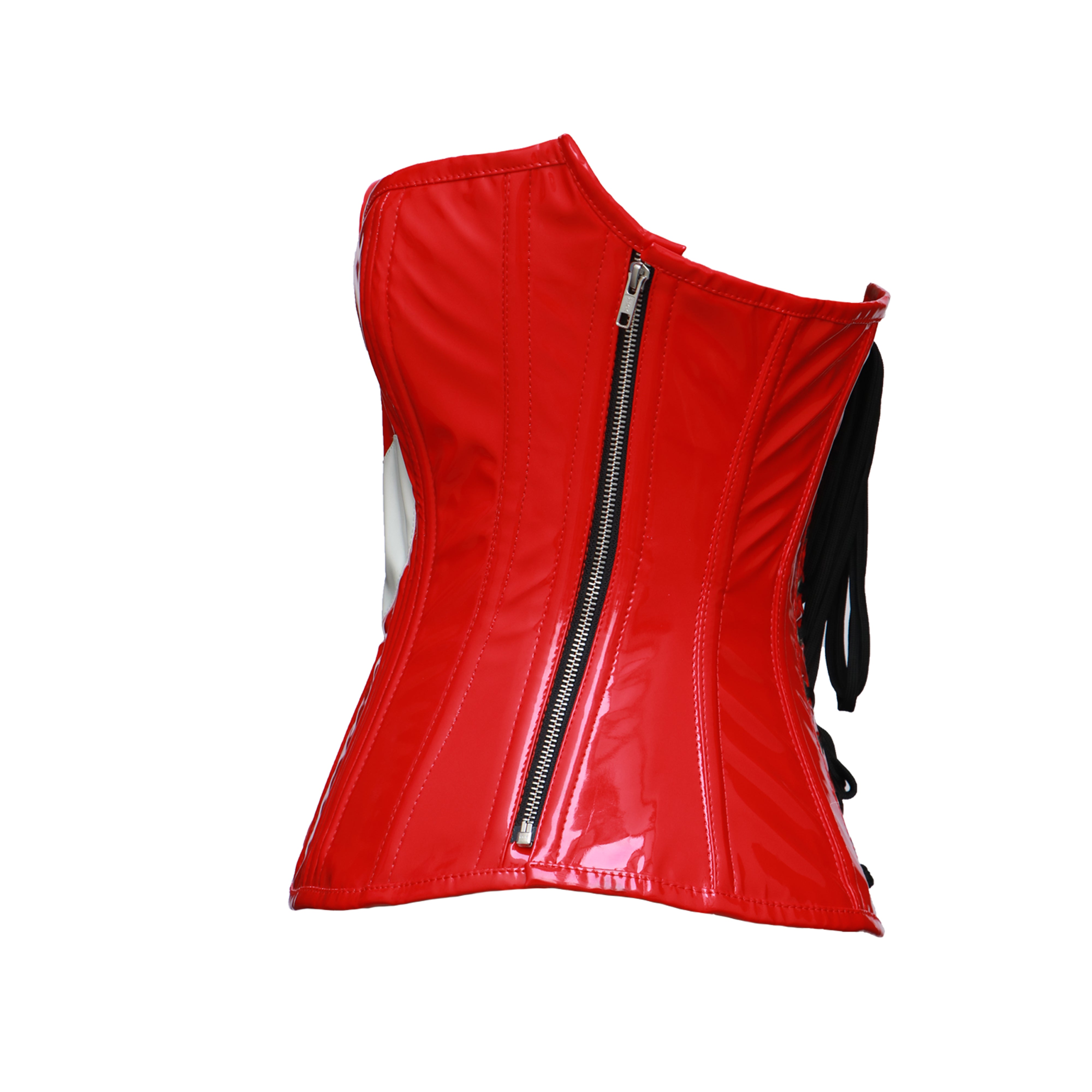 CorsetsNmore Women’s Red And White PVC Leather Costume Overbust Corset Top