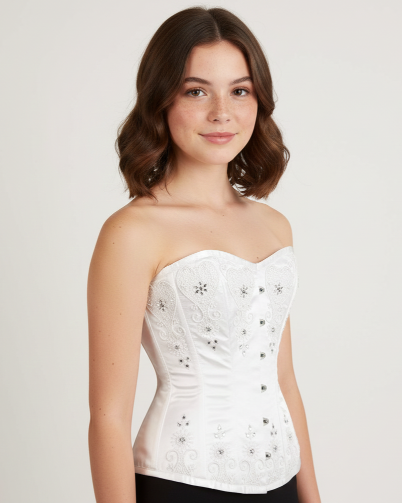 Bone: 10 Spiral steel bones are distributed all around the corset.