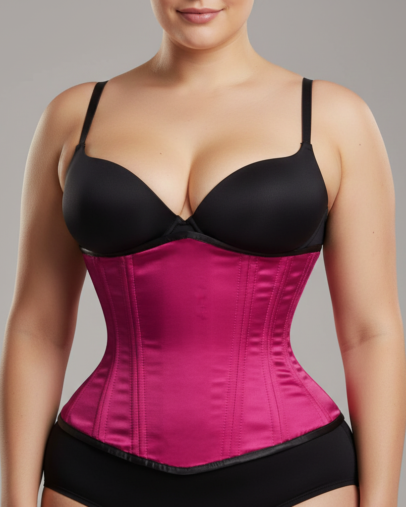 Royal Pink Satin Double Bone Front Closed Gothic Underbust Bustier Corset