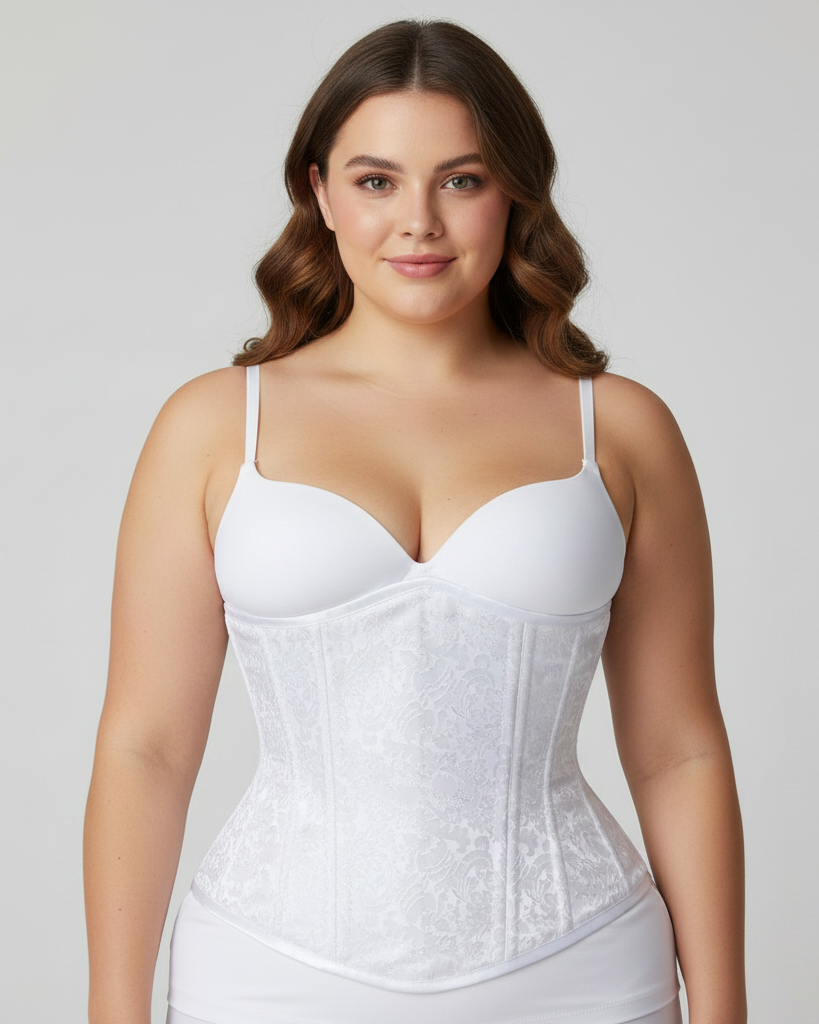 Plus Size White Brocade Double Bone Front Closed Gothic Underbust Bustier Corset