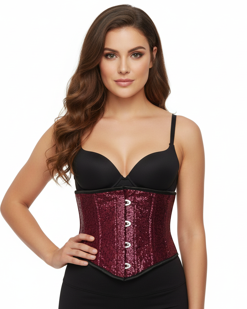 Wine Color Sequins Underbust Corset Gothic Waist Training Belt
